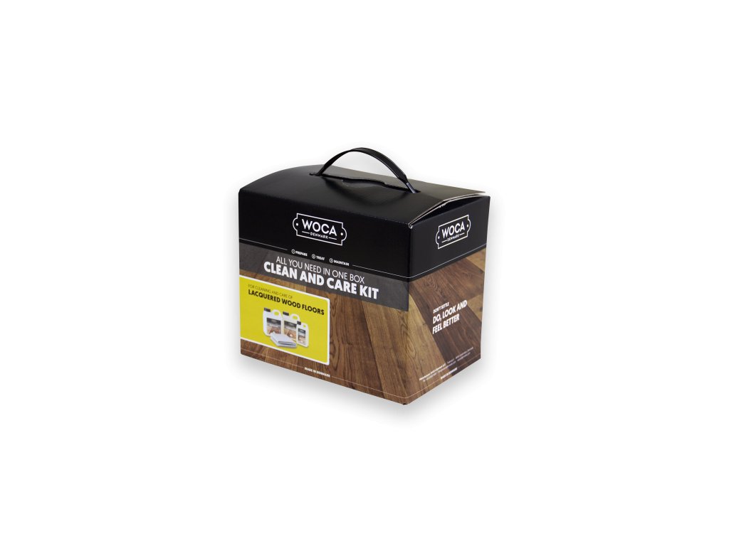Sada prostředků na údržbu lakovaných a vinylových podlah. Obsahuje: 1 ks Pečující balzám na lak a vinyl 1 l 1 ks Intenzivní čistič 0,25 l 1 ks Mýdlo na lak a vinyl 1 l 1 ks Bavlněný hadr